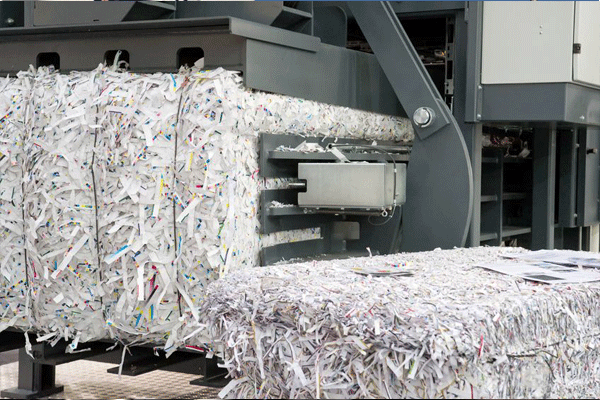 The confidential data is weighed and destroyed by shredding and automatically fed through a compactor attached to the shredder for secondary destruction. On completion, a Certificate of Destruction is issued and the shredded material removed for recycling.